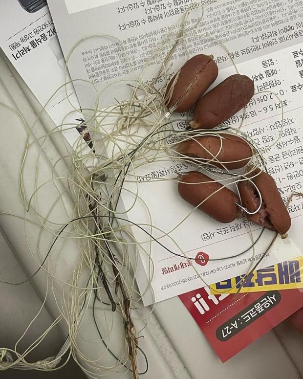 낚싯바늘 소시지는 사람들 눈에 잘 띄지 않게 낙엽에 가려진 상태로 자칫 강아지가 먹었을 경우 사고로 이어질 가능성이 농후했다.